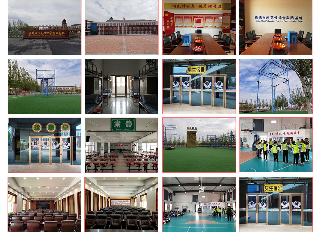 獅愛盤錦市示范性綜合實(shí)踐基地坐落于美麗的遼東灣新區(qū),附近既是舉世聞名的“紅海灘風(fēng)景區(qū)”,2016年9月投入使用,是國家級示范性綜合實(shí)踐基地?;卣嫉孛娣e112畝,總建筑面積2萬平,整體分為五大區(qū)域:拓展訓(xùn)練區(qū)、學(xué)軍區(qū)、學(xué)農(nóng)區(qū)、生命安全教育區(qū)及綜合訓(xùn)練區(qū),可同時(shí)接待1000名學(xué)員餐飲、住宿及培訓(xùn)工作,目前是省內(nèi)設(shè)施最為完善的教學(xué)培訓(xùn)基地。